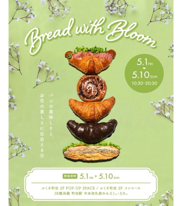 ルミネ町田で春の花とパンまつりを開催! 都内有名店や全国を巡るパン屋さんをはじめ、ルミネ初出店のショップが集結。10日の「母の日」に向けてお花屋さんも出店します。さらに期間中、抽選会も開催! ぜひ訪れてはいかがでしょうか。