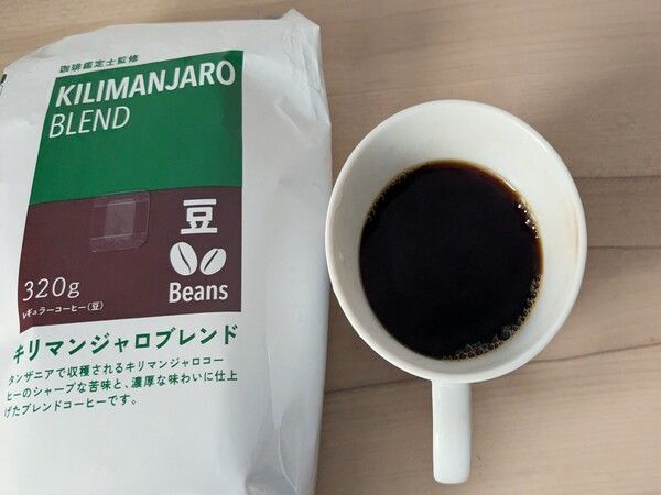 ロピアのオリジナルブレンドコーヒー。キリマンジャロブレンドはダークチョコレートのようなしっかりととした苦味とナッツを思わせる香ばしい味わい。温度が下がるとメープルシロップを思わせる甘味もあり、中深煎り~深煎りコーヒーが好きな方におすすめです。ミルクを入れたり、アイスコーヒーにするのも◎。