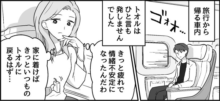 両親と行った温泉旅館で「支配」だの「尊厳」だの、自分に酔ったようなワケの分からないことを言い出したトオル。ちょっと情緒不安定なのかもしれない、家に帰れば落ち着くだろう……と思っていました。