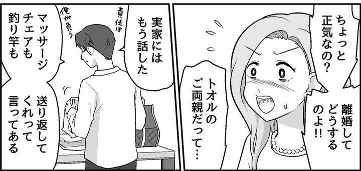 けれどトオルは離婚に向けてすぐに荷物をまとめはじめたのです。あまりの恩知らずな言動に私は震えが止まりませんでした。うちの両親には今までどれほどの援助をしてもらったことか。そこから逃げるなんて泥棒と同じです。