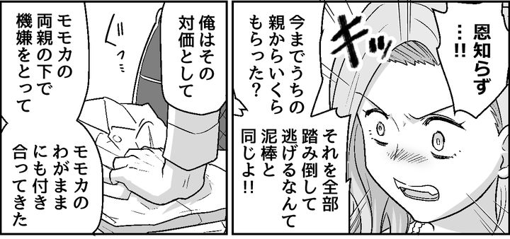 うちの両親のおかげで今の生活があるのに、何が不満なのでしょう。トオルのご両親だって、うちの親から高額なプレゼントをもらっているのに、合わせる顔がないはずです。全部踏み倒して逃げるつもり……? その神経が信じられません。