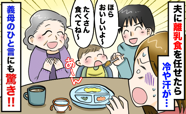 義両親と同居しながら、生後7カ月になる長男を育てていたときのこと。少し手が離せなかったので、夫に赤ちゃんの離乳食をお願いしました。義母もそばにいたので安心して任せたのですが、しばらくしてリビングをのぞいたらゾッとする展開になっていて……。