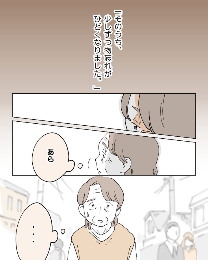 そして、義母の物忘れがひどくなったのは、ちょうどこの頃からでした。それまでは自分の身の回りのことも、私たち家族のこともいつも気にかけてくれていたのに、ある日を境に少しずつ思い出せないことが増えていったのです。