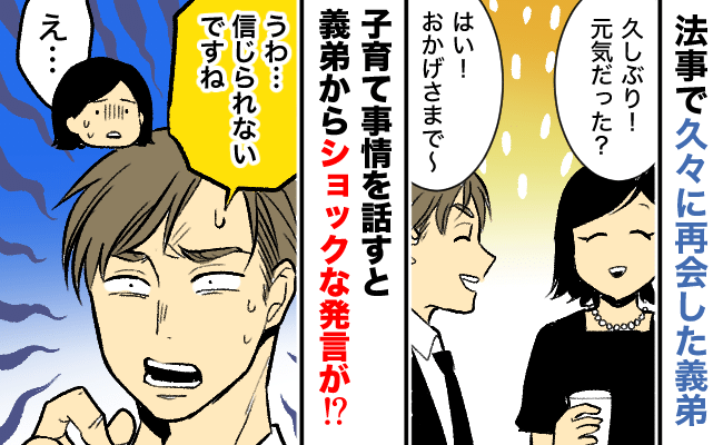 普段会わない義弟に久しぶりに会ったのは、身内の法事でした。義弟にも3人の子どもがいるので、わが家の子どもたちと仲良く遊んでいました。和やかな雰囲気で法事後の食事会が始まり、お互いの子育ての話になったのですが……。
