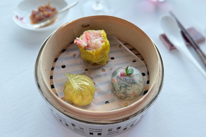 3種類の蒸し点心がせいろで提供されます。どれも華やかで、きれいなビジュアルにうっとり。蒸し点心はディナーでの提供はしておらず、ランチコースでのみ楽しむことができます。