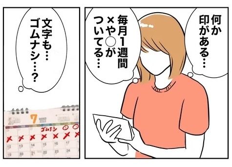 2. 【漫画】「まさか…」夫のカレンダーにつけられた印の意味を理解してゾワッ!【夫と保育士が!? シタ側の哀れな末路 Vol.15】