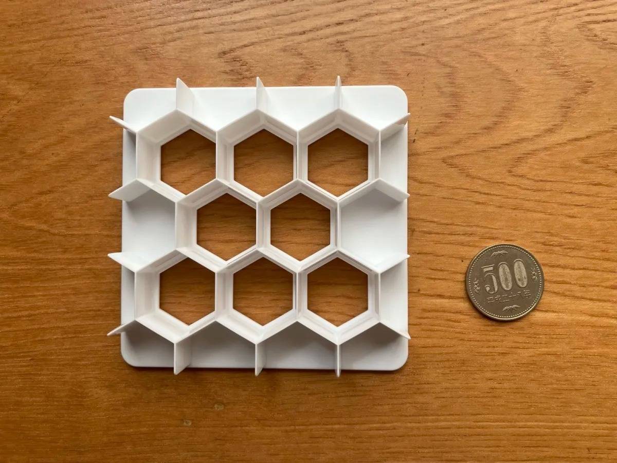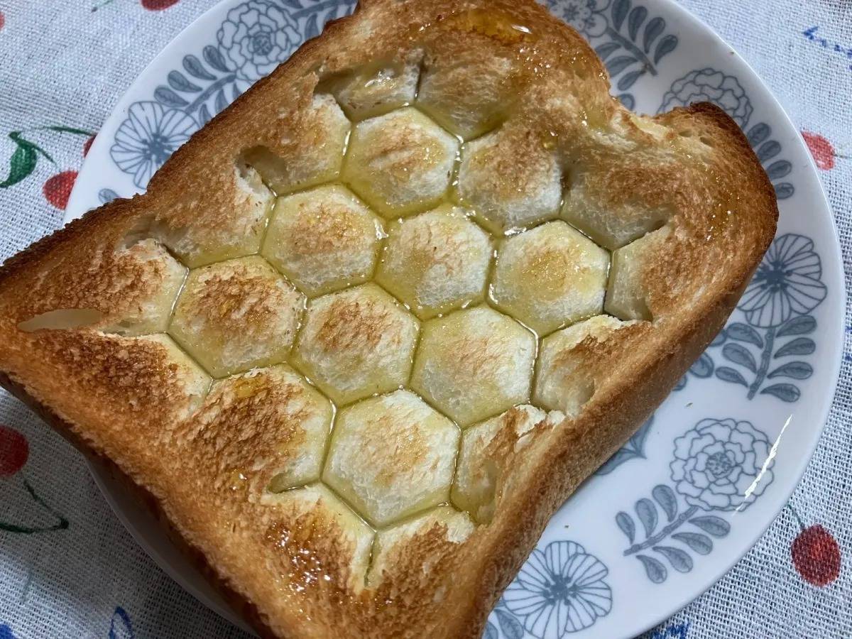 六角形の押し型で、食パンにハニカム状の切れ目がつけられます♪
