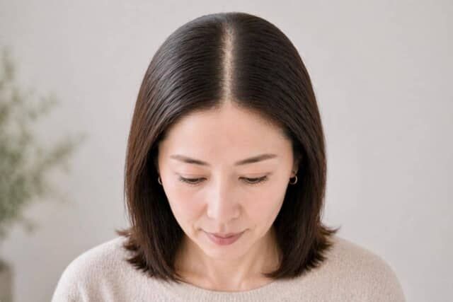 分け目をはっきり作ると、髪は整って見える一方で、トップがぺたっとしやすくなります。