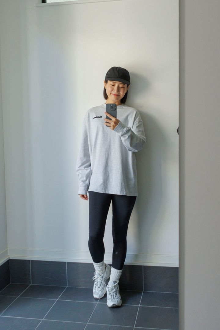 ワークアウトウェアは私服同様にシンプルが基本。Tシャツ・レギンスはルルレモン、ニューバランスのスニーカー、ソックスはユニクロ、キャップはKIJIMA TAKAYUKI(キジマ タカユキ)。 YOSHINORI.KUBO