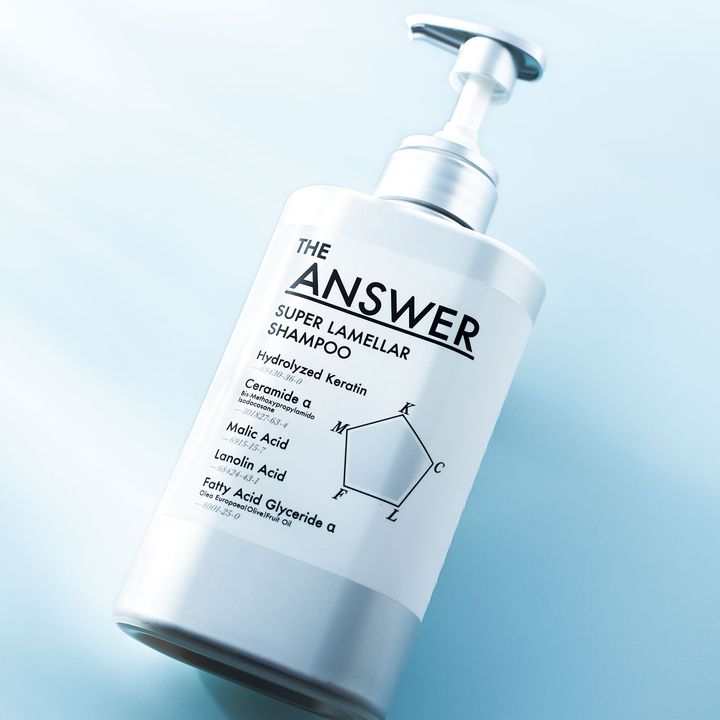 「1~2カ月に一度白髪染めやカラーリングを繰り返しているとケミカルダメージが蓄積し、キューティクルが開き、カラー分子がどんどん流出してしまいます。カラーリングを保持したい人は、洗浄力の高いものではなく、アミノ酸系のシャンプーに見直してみてください」美髪5大必須成分などヘアケア成分をたっぷり配合したアミノ酸系シャンプー。THE ANSWER スーパーラメラシャンプー 400ml ¥1,760()