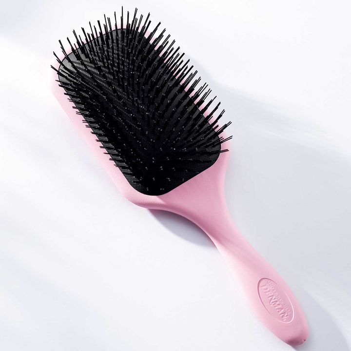 「ブラッシングをしていて毛が絡みやすくなってきたと思ったら、加齢により髪の毛が細くなってきたことが原因かもしれません。毛先→中間→根元の順に梳かしていくのがオススメです。ブラシのソフトピンが長短2種類あって計算されたピン配置のデンマンのパドルブラシなら絡まず一気に梳かせます」デンマン D90L タングルテイマー ウルトラ ピンククラッシュ ¥3,740()