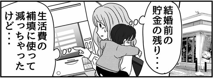 怒鳴り続けるノボルさんから逃れるため、ダイを抱いて結婚前の貯金を全額下ろしました。