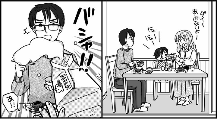 <貸した私がバカだった!?>食事中、牛乳が…「息子が叩かれるッ!」【まんが:リサの気持ち】
