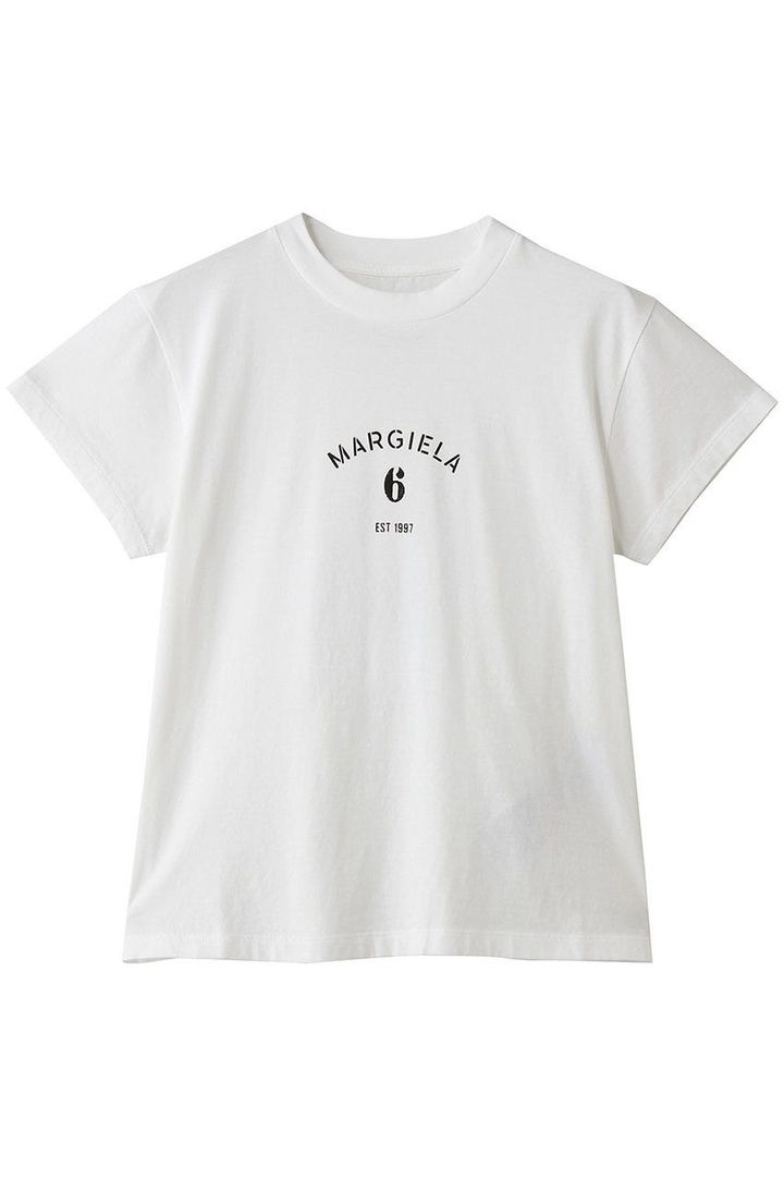 袖が短めでコンパクトに着こなせる「エムエム6 メゾン マルジェラ」のロゴT。コットン100%素材のクリーンな風合いと柔らかな肌あたりも◎。