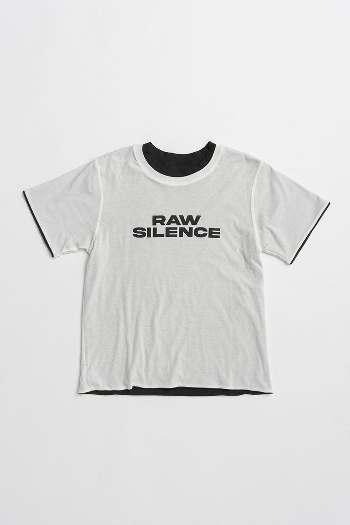 シルバーの箔(はく)プリントとコンパクトなサイズ感が特徴のモードなロゴT。オールシーズン使える綿100%素材もうれしい。