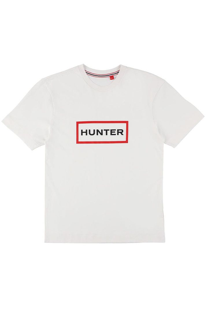 英国王室御用達のレインブーツで知られるブランド「ハンター」のロゴがあしらわれた1枚。赤のディティールがコーデのアクセントに。