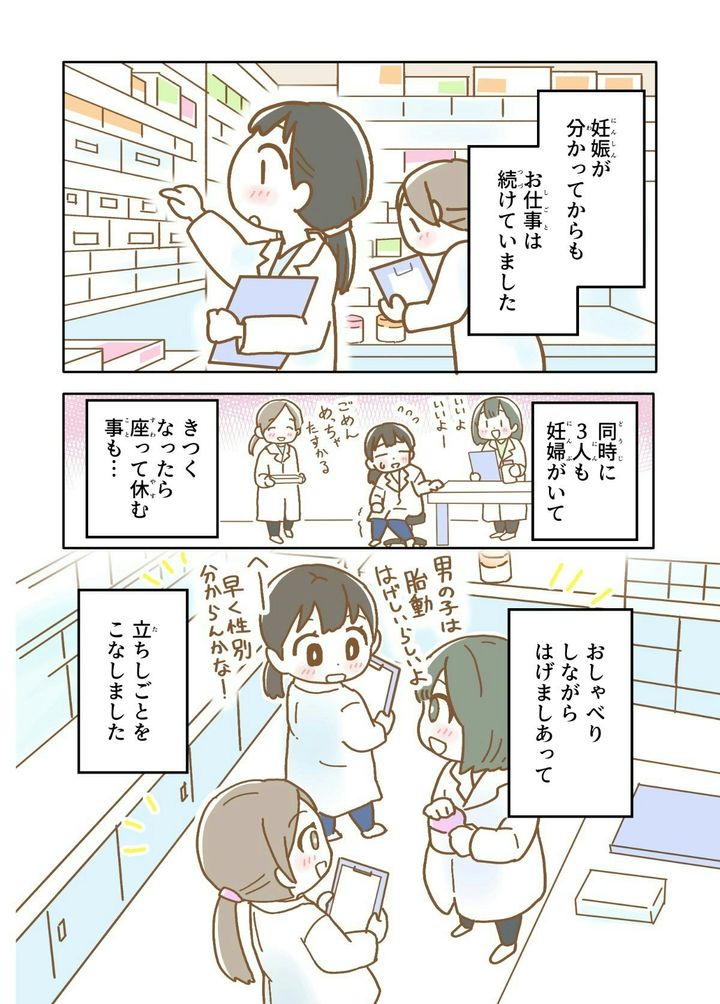 主人公は、妊娠が発覚したあとも薬剤師の仕事を続けます。
