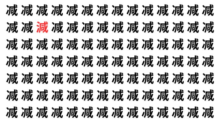 たくさんの「减」の中に、よく似た別の漢字が1文字だけ隠れています。