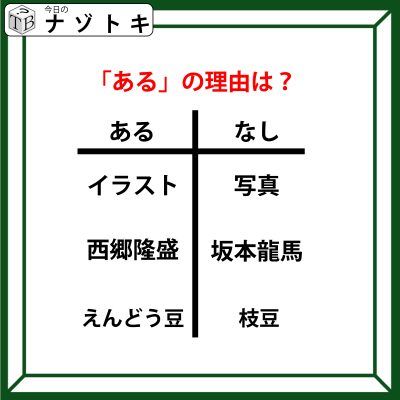 あるなしクイズです!「イラスト、西郷隆盛、えんどう豆の共通点は?」あるの理由を導きましょう【難易度LV.3・中辛】
