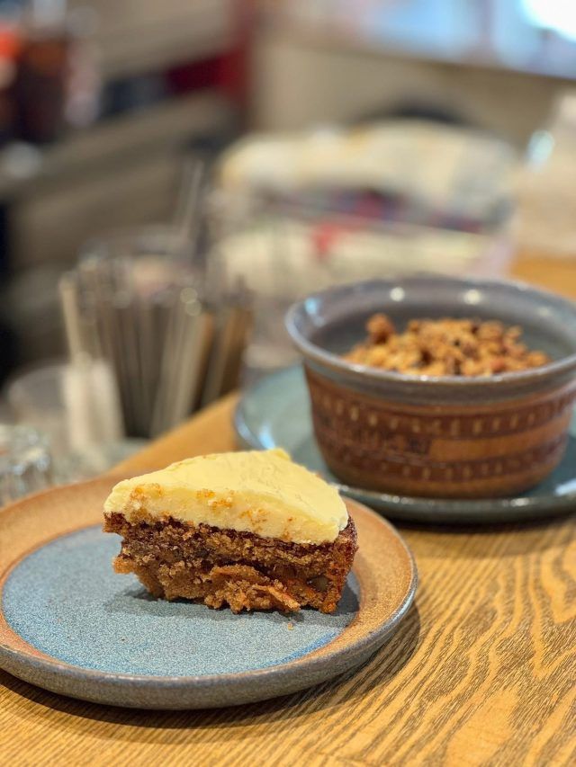 カウンターに座っていると、他のお客さんがオーダーしたものが次々と仕上げられていきます。 キャロットケーキもおいしそう。