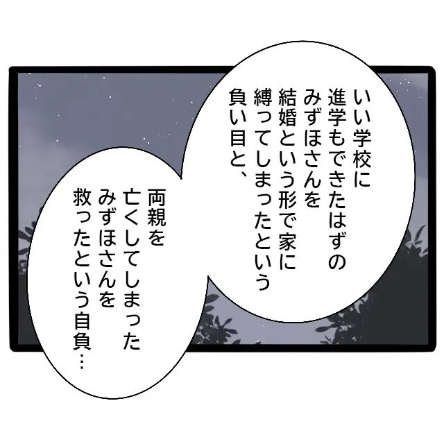 すると隆明は、兄のコンプレックスを静かに紐解いていきます。ひとつは、本来ならいい学校に進学できたはずのみずほ先輩を、結婚という形で家に縛ってしまったのではないかという負い目。そしてもうひとつは、両親を亡くしたみずほ先輩を自分が救ったという自負ー・・・