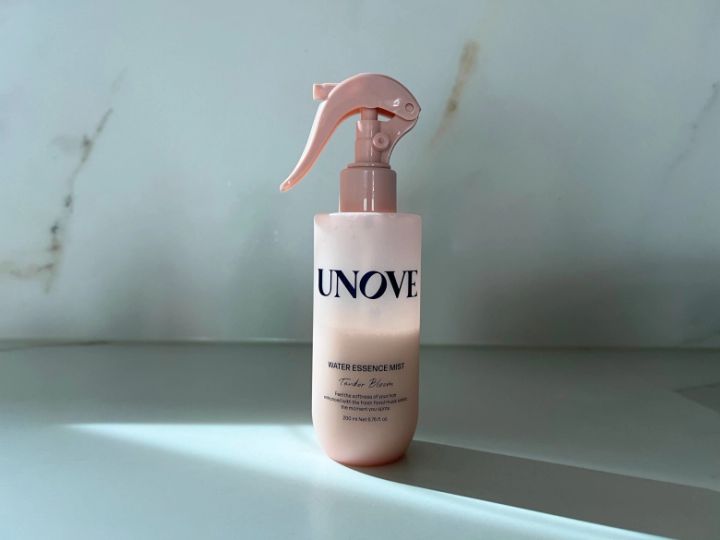 エッセンスと水分の2層で構成された、UNOVE(アノブ)のヘアエッセンスミスト。細かい粒子で軽やかな水分感なので、髪にすっとなじみ、さらさらな髪へと整えてくれます。