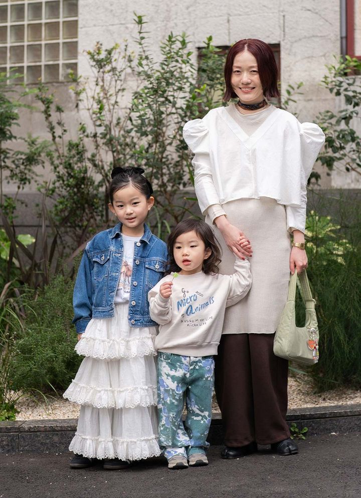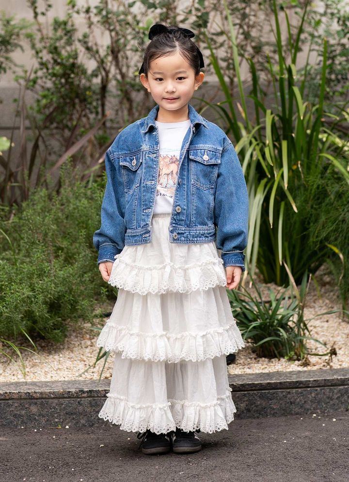 キッズの大胆なフリルスカートに視線集中! さらにスニーカーやデニムでスパイスを足して甘辛く仕上げたのがグッド。爽やかなカラーパレットで統一して、春ムード満開のファミリーリンクコーデが完成♪