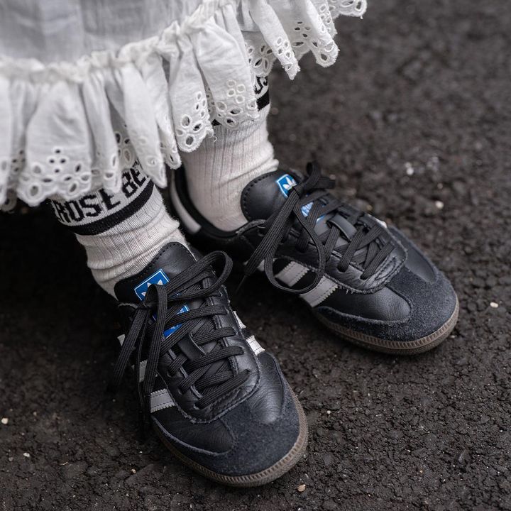 スポーティなスパイスを効かせた足元をキャッチ! テンションをシェアした、ロゴソックスのレイヤードも抜かりなし。
