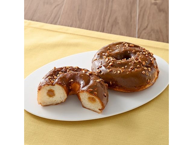 も~っちりとした食べごたえのあるドーナツ生地に、キャラメルクリームを絞ったドーナツです。表面にキャラメルチョココーティングとアーモンドをトッピングしました。