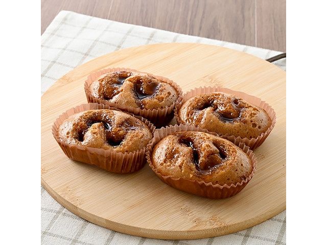 沖縄県産黒糖を使用した生地に、沖縄県産黒糖入りの黒糖蜜フィリングをトッピングした、蒸しパン4個入りです。