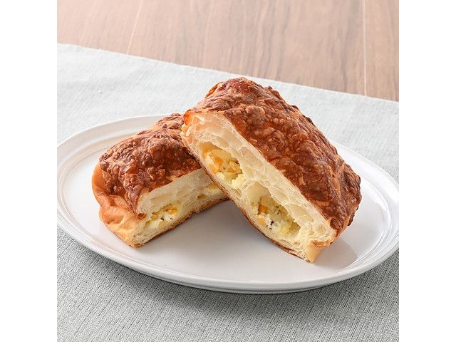 も~っちり食感の生地に、角切りチーズ入りのチーズクリームを包み、シュレッドチーズをトッピングしたチーズパンです。