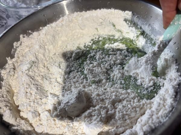 (下準備) ・よもぎは分量の水とミキサーにかける ・薄力粉をふるう