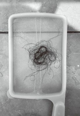 元旦、夫の実家から帰ってきた日。この日はお湯だけで髪や頭皮を洗う「湯シャン」だけでなく、シャンプーも使って頭を洗ったのですが、出るわ出るわ髪の毛が……。「これは、さすがに多い」と、思わずパシャリ。