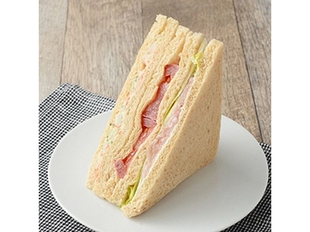 あしかが美人トマト、たまごサラダ、ハム、野菜を組み合わせた様々な具材を味わえる野菜のミックスサンドです。 カロリー:314kcal 【販売地域】茨城県、栃木県、群馬県、埼玉県