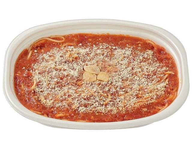にんにくを効かせたトマトソースに、ガーリックフレークとチーズをのせたパスタです。 カロリー:746kcal 【販売地域】関東、静岡県