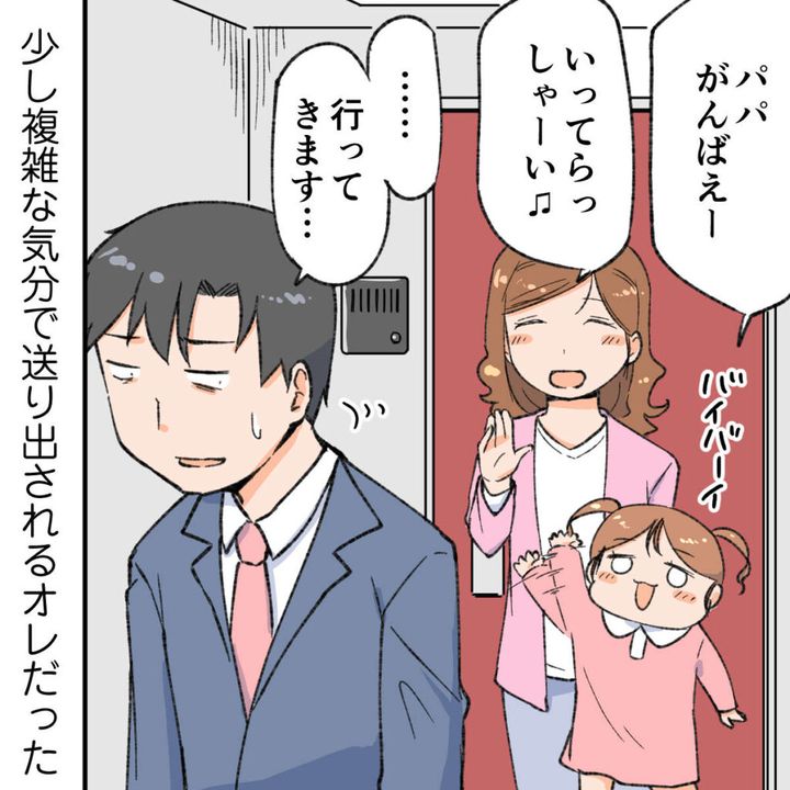 そして通勤再開の日。「パパがんばえー」「いってらっしゃーい♪」とてもにこやかな家族の見送りに、「・・・行ってきます」少し複雑な気分で送り出されるオレでした。