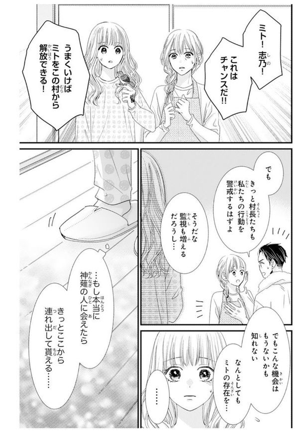 自由を手に入れる絶好のチャンス到来。閉鎖的な村から抜け出す希望と、失敗を恐れて揺れる心/龍神と許嫁の赤い花印⑯