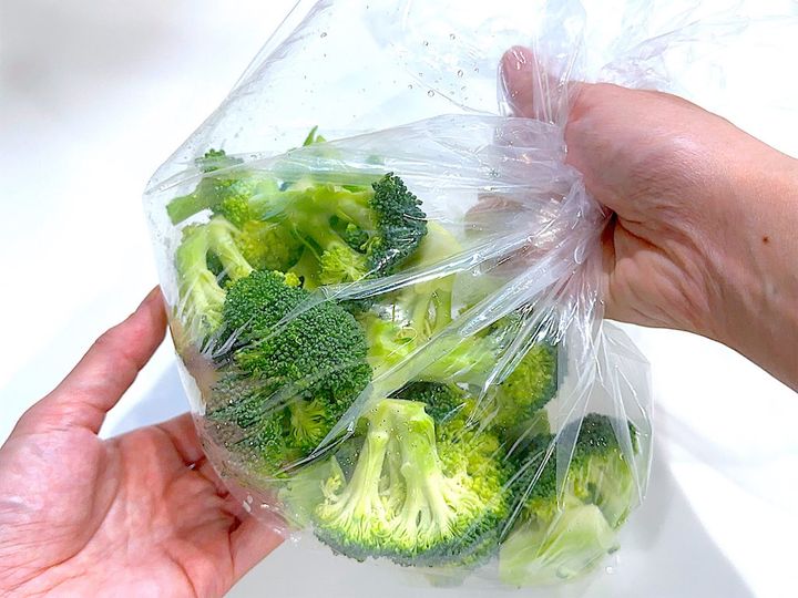 2. ビニール袋に1のブロッコリーと塩を入れて振る。