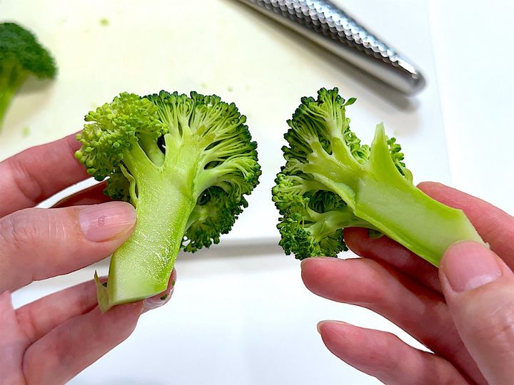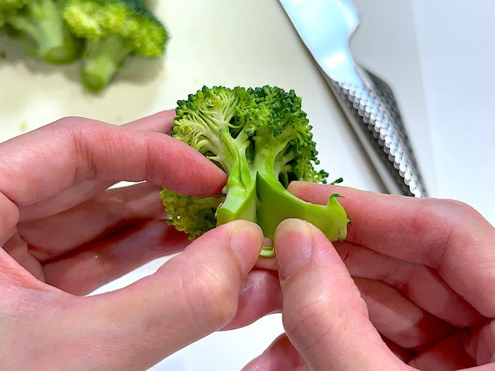 1. ブロッコリーを洗ったら小房に分け、火が通りやすくなるよう小房をさらに縦半分に切る。