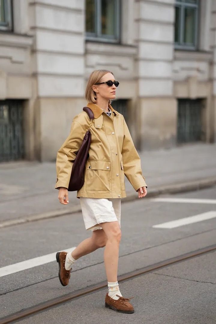 フィールドジャケットとショートパンツでまとめたカジュアルな装いに、ボートシューズをプラス。ラフにまとまりがちなスタイリングを、足元でトラッドに引き寄せて。