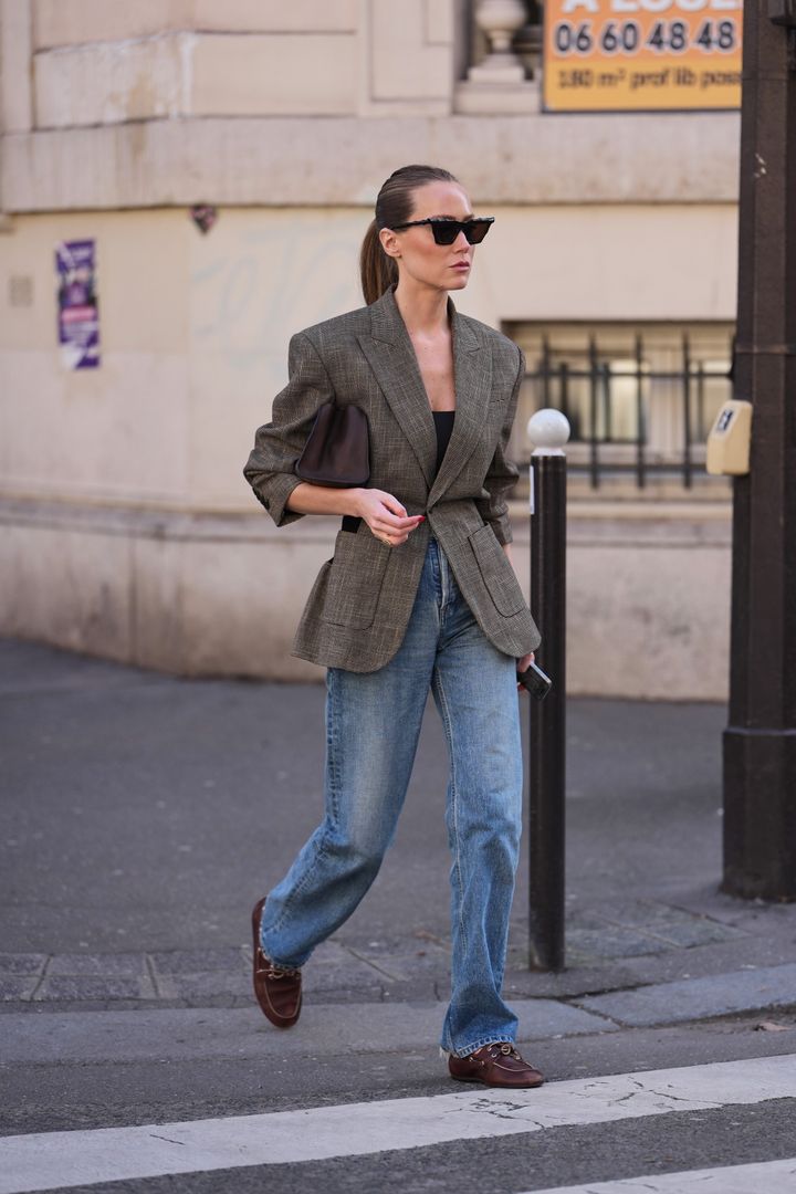テーラードジャケットのようなきちんと感のあるアイテムと組み合わせるのも鍵。シルエットを整えつつデニムでラフさを加え、ボートシューズを合わせることで、かしこまりすぎない今のストリートにフィットする着こなしに。