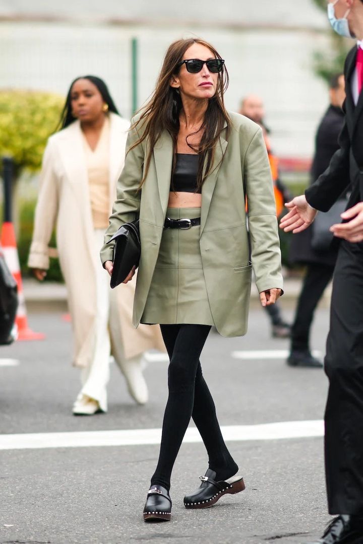 ミニ丈のセットアップにブラトップを合わせたスタイリングに、クロッグを合わせて変化を。ラフさのある足元が、着こなしにモードなニュアンスを添えて。