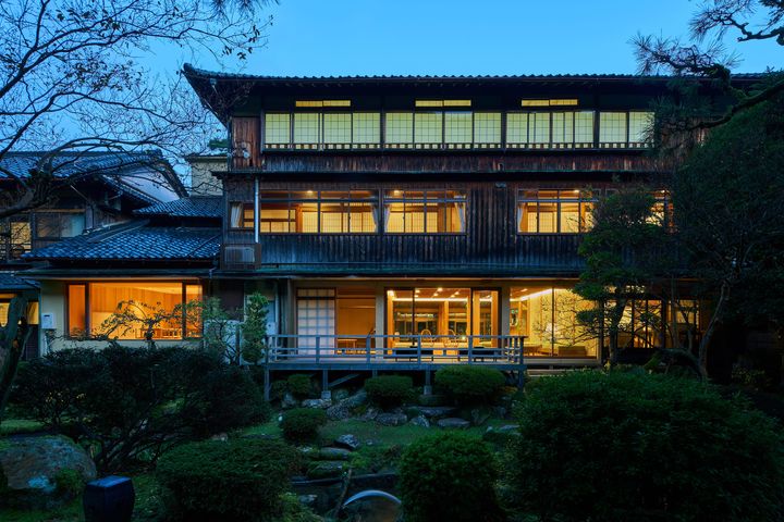 2017年、玄関・茶室棟(現在の本館玄関・茶室・応接室など)、客間棟(「老松」)、中央棟(「木曽」「巴」)、居間・書斎棟(写真の「松風」と「小督」)、御幸の間(「みゆき」)、待合、露地門が国の有形文化財に登録された。近代和風住宅の美を今に伝えている。