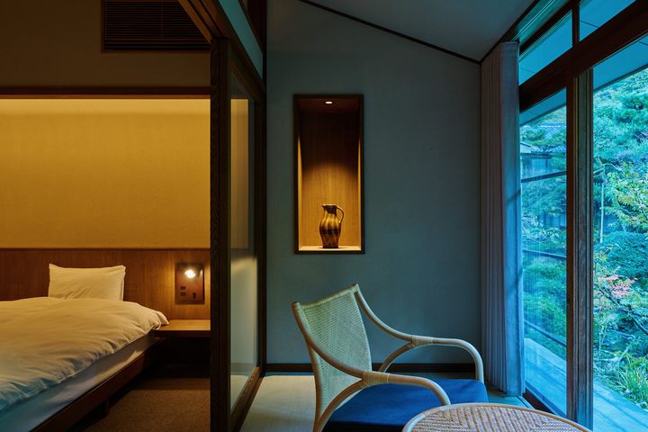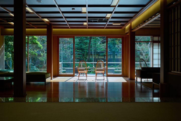 2013年より二俣公一が率いるケース・リアルによるリノベーションを段階的に実施。「更新作業」と位置づけ、文化財である建物の良さを大切に維持しながら全4期の工期を経て、現代に求められる快適さや機能をプラス。過去に皇族も迎えた特別室「22号室」の改修では、既存のディテールや材も生かしながら、和室と洋間が柔らかくつながる上質な空間をつくり上げた。館の全体に穏やかさが漂う。