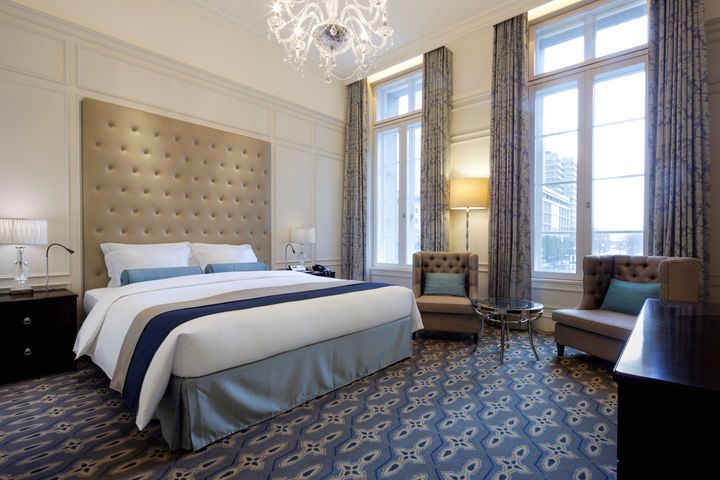2012年の再開業時に、客室は58室から150室に。写真は駅前広場と皇居外苑を眺められる客室タイプ「パレスビュー」。駅舎の南北ドームに面した客室タイプ「ドームサイド」からは、甦ったドームレリーフを部屋の窓から間近に見ることができ、こちらも人気が高い。