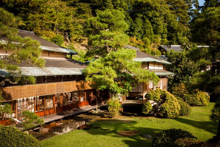 広大な日本庭園と数寄屋造りの各建物が、プライベートな別邸として構想された当時のまま保存されており、それらを宿泊して体感できるという稀有なスポットだ。