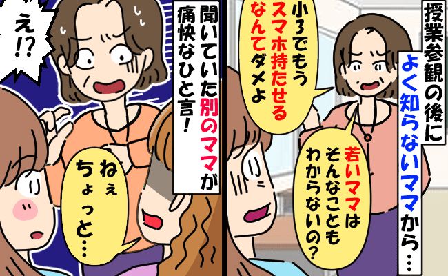 授業参観後に「スマホ持たせる必要ある?まったく若いママは…」と批判するママさん…すると別のママさんが痛快なひと言!
