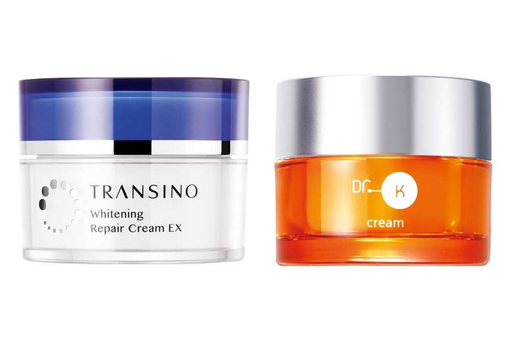左から:トラネキサム酸を配合したジェルで透明感のある肌に。トランシーノ薬用ホワイトニングリペアクリームEX [医薬部外品] 35g ¥4,400〈編集部調べ〉()美白やシワ改善、抗炎症にレチノール誘導体など有効成分が炎症老化を徹底防御。ドクターケイ 薬用ABC-GプレミアムクリームTA [医薬部外品]30g ¥8,250()