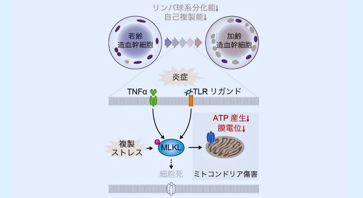 造血幹細胞もまさにこれと同じ。MLKLにエネルギーを奪われた結果、自己複製やリンパ球の生産といった「重いタスク」を処理できなくなり、生きたまま衰えていく。