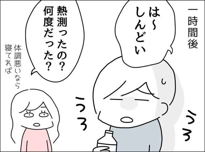 夫の裏切り後、夫婦関係の再構築を選択したみさき一家。だが、妻が高熱でダウンしても夫はまったく心配してくれず、「今から病院に行こうと思う」と話しても「マジか~」と嘆く始末。実は夫の会社では家族に陽性者が出た場合、自分も検査を受けなくてはならず、もしも陽性ならボーナスカットになるという。